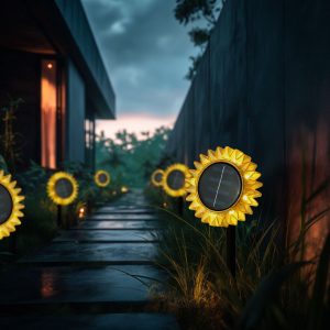 Szolár színes virág – 8 x 8 x 32 cm – 10 melegfehér LED – sárga Garden of Eden 11735C