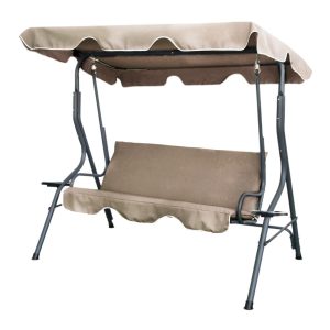Kerti hintaágy – 170 x 110 x 153 cm – sötét bézs – pohártartóval CMK0735