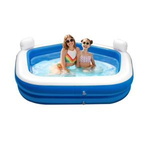 Felfújható medence fejtámlával, italtartóval – 213 x 206 x 60 cm – Fehér / Kék 56438
