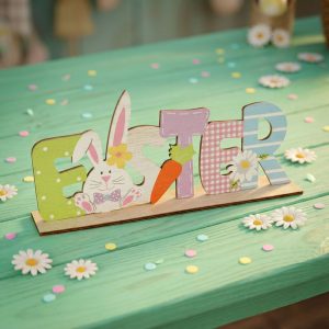 Húsvéti fekvő asztaldekoráció fából – nyuszis 57968A