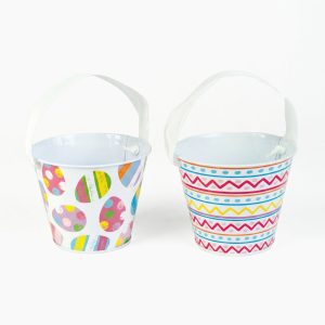 Húsvéti mintás kaspó / vödör – fém – szalagos fogantyú – Ø11,7 x 10 cm 57973